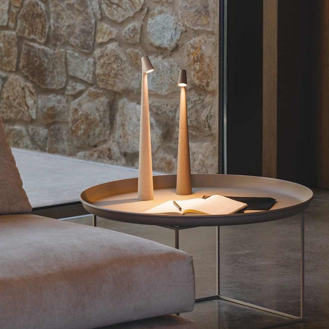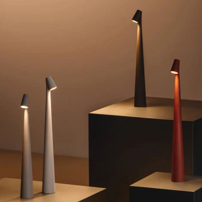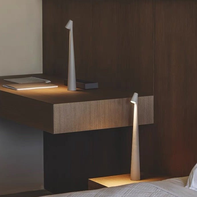 Elevate your space with the Kiva Table Lamp, a dimmable, USB-rechargeable light that blends Nordic minimalism with a futuristic edge. Crafted from premium matte-finished aluminum, this modern table lamp delivers a sleek, sculptural presence while offering warm, focused illumination for any room.