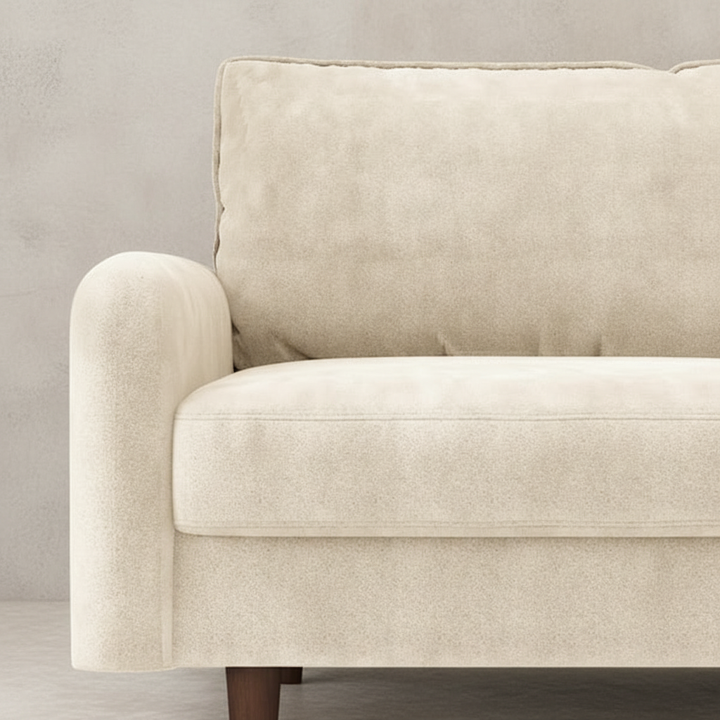 The Arlo Velvet Sofa brings upscale comfort and refined style to any modern space. Wrapped in breathable, soft-touch velvet and built with a high-density sponge core, it delivers plush, cloud-like seating that retains its shape over time. Its rounded armrest design adds an elegant silhouette, while the compact yet spacious frame makes it ideal for living rooms, bedrooms, offices, and studio spaces seeking a luxe, minimalist touch. Moisture-resistant velvet ensures easy maintenance, while the neutral beige tone blends effortlessly with contemporary interiors.